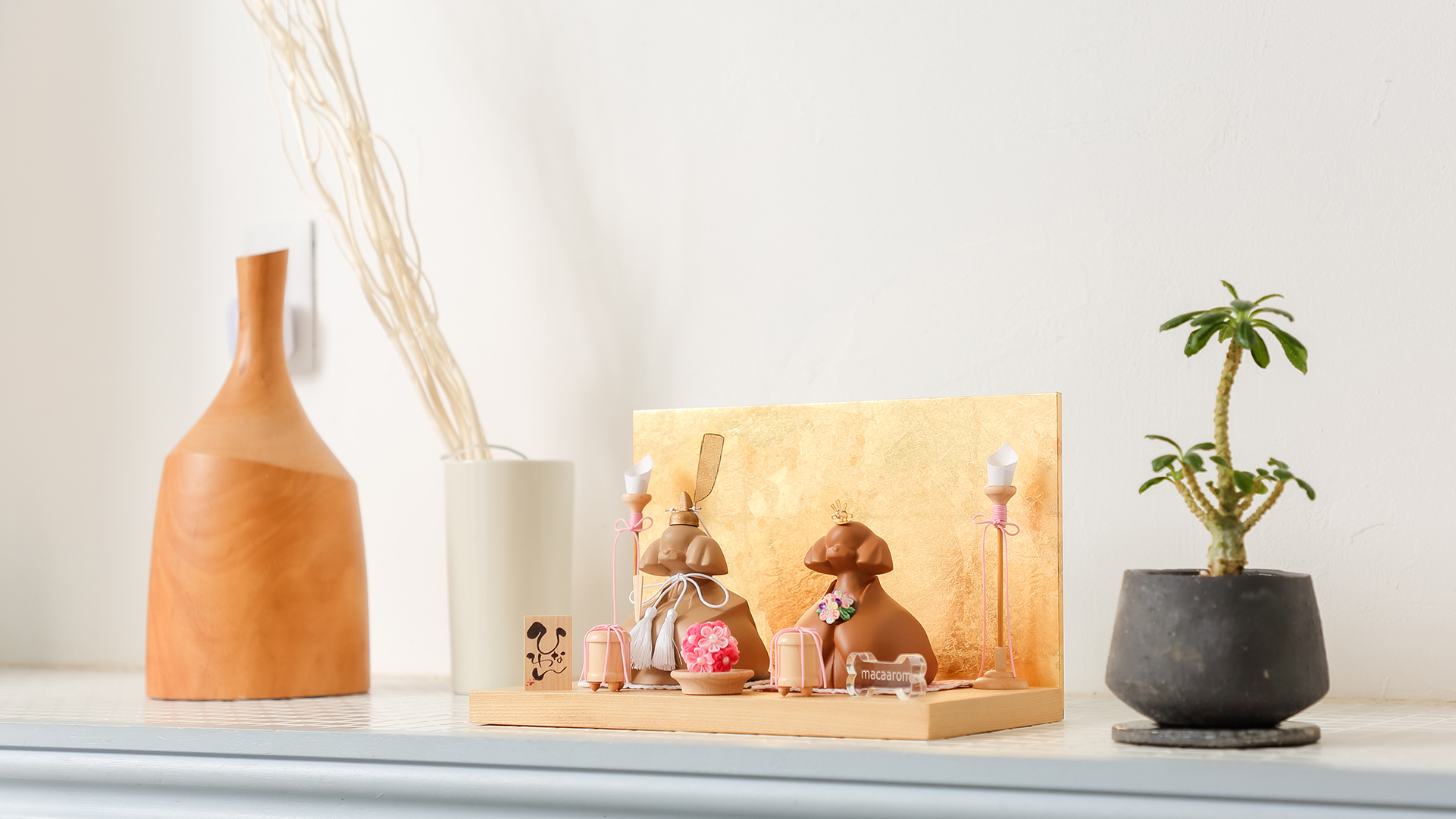 あぐりにも雛人形をと思い、いろいろ探しましたが、色や形、顔など好みのものが中々見つからず…。